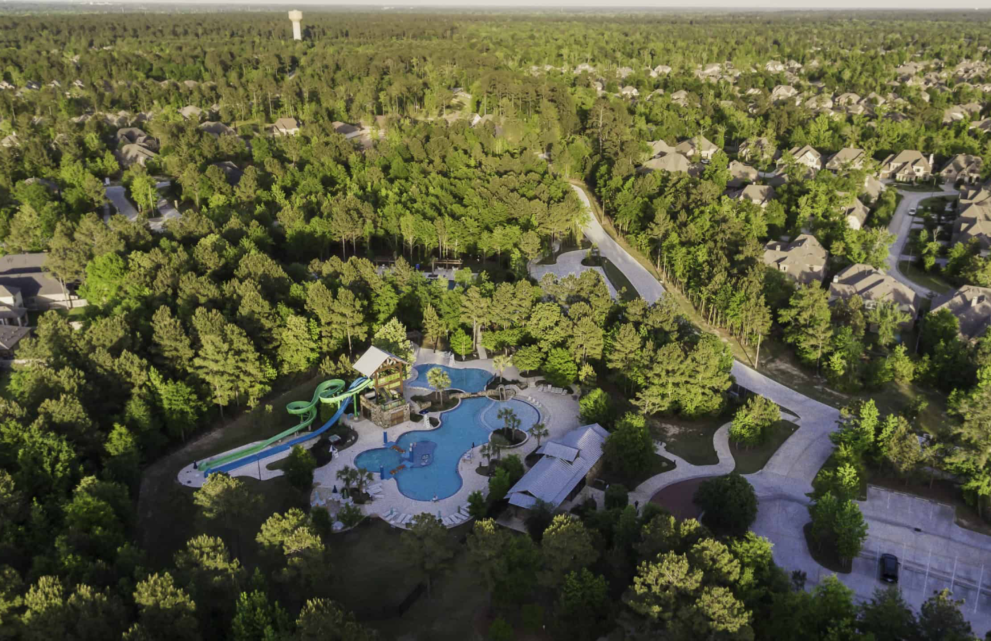 Entre sus principales amenidades se incluyen el Woodforest Golf Club, piscinas tipo resort, 16 parques recreativos, senderos de más de 24 km, canchas deportivas y el centro comercial Pine Market.